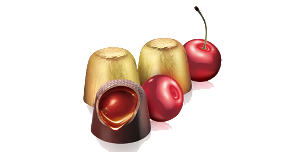 Horká čokoláda 57% (kakaová hmota, cukor, kakaové maslo, emulgátor: sójový lecitín), cukor, glukózový sirup, odkôstkované višne 16%, alkohol, aróma višňová a rumová. V horkej čokoláde kakaová sušina najmenej 54 %. Výrobok môže obsahovať orechy.