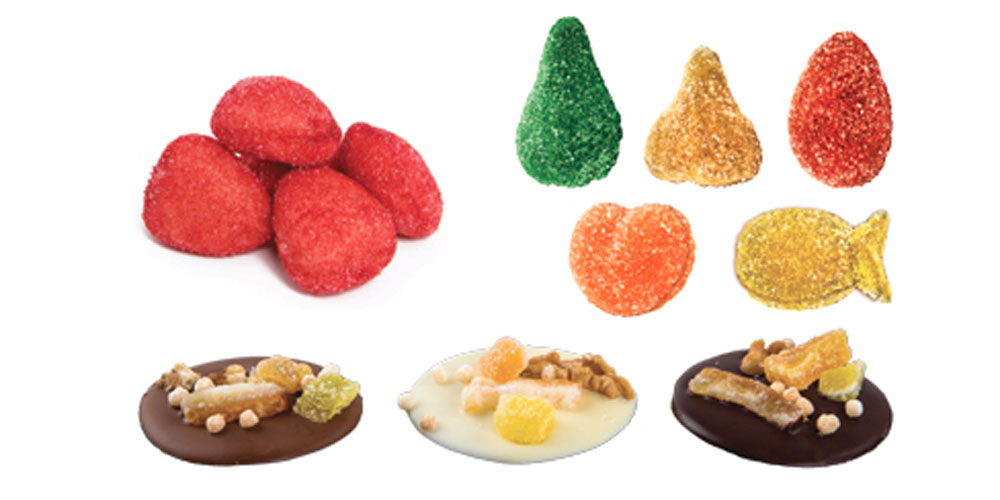 Zloženie: Ovocná zložka 50%: (jablko, hruška, mandarínka, jahoda, ananás, broskyňa, višňa, figa) cukor, glukózový sirup, želírujúca látka: pektíny, kyselina: kyselina citrónová, regulátor kyslosti: citrany sodné, farbivá: kurkumín, karmíny, meďnaté komplexy chlorofylov a chlorofylínov; arómy.
